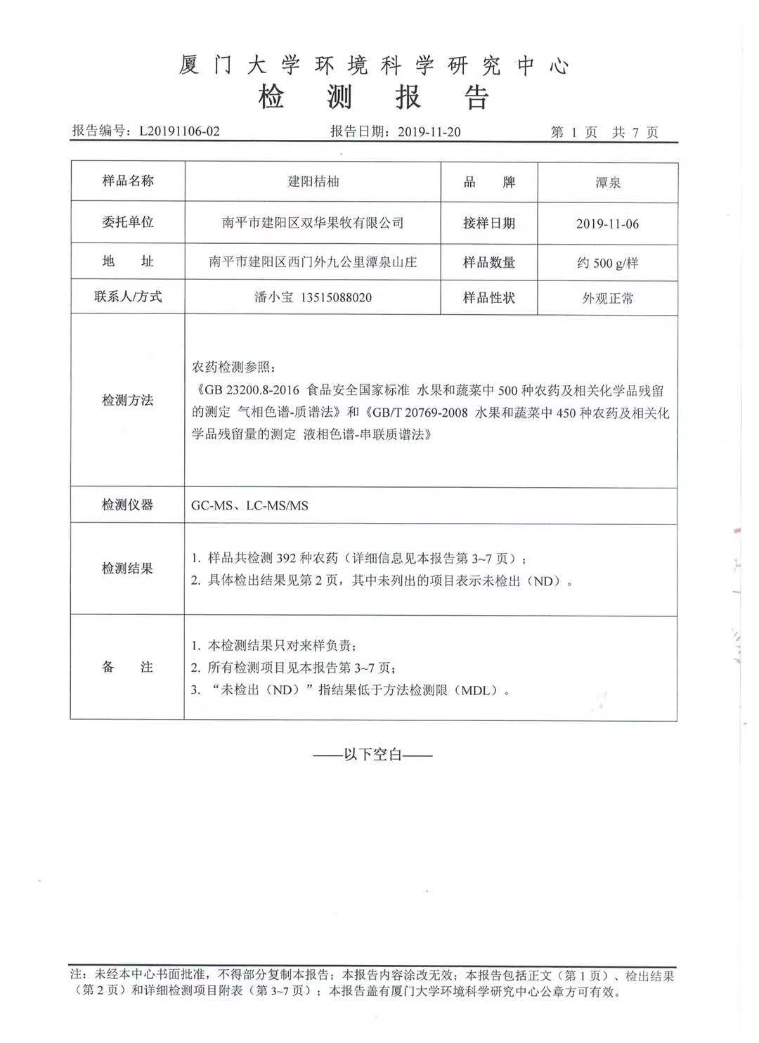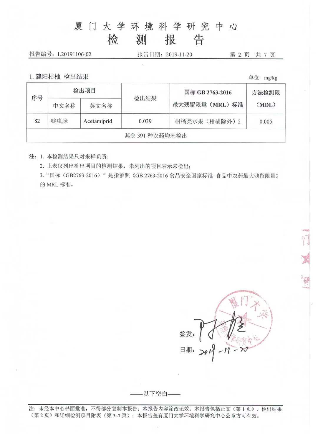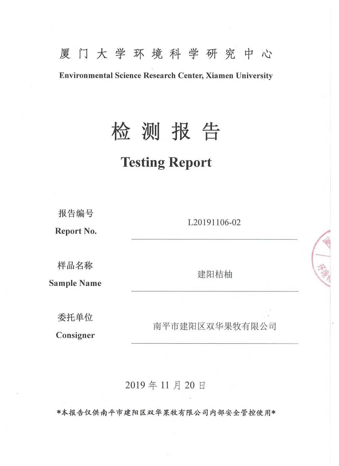 科學(xué)種養,大幅度提高了桔柚果實(shí)的品質(zhì),2010年1月11日經(jīng)南平市中心檢驗所檢測,桔柚果實(shí)中可溶性固形物含量高達14%。
